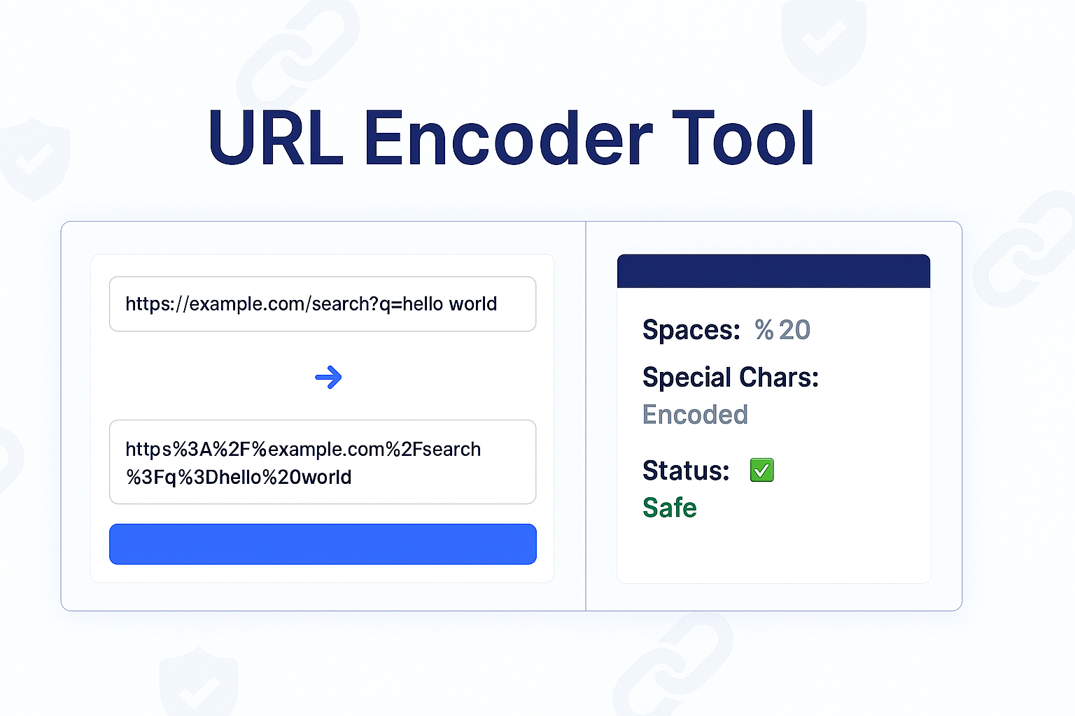 Our free URL Encoder is a simple tool that instantly translates any string of text, including special characters, into a single, URL-safe format that can be safely transmitted over the internet without breaking.